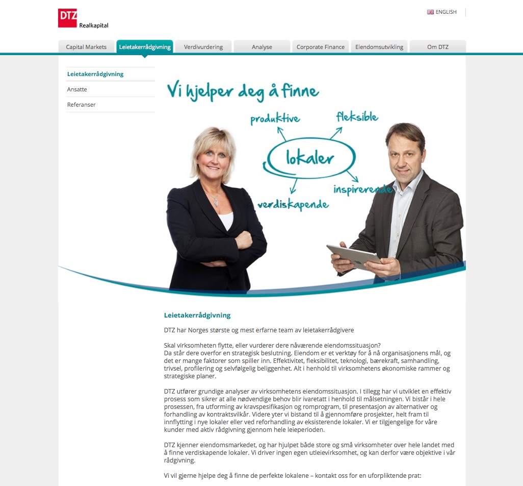 Tekst på norsk og engelsk til DTZs hjemmeside. Oppdragsgiver: DTZ AD: Bjørn Smørholm Lik Laster inn...